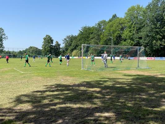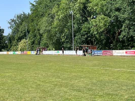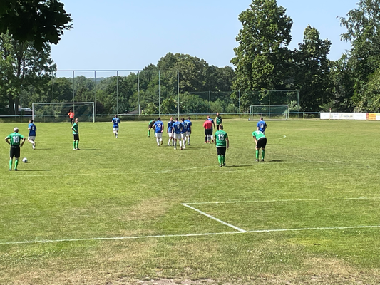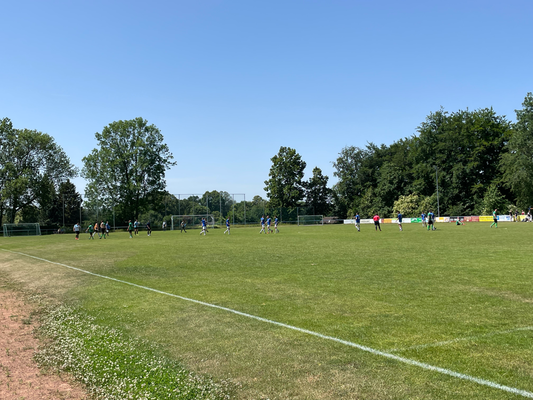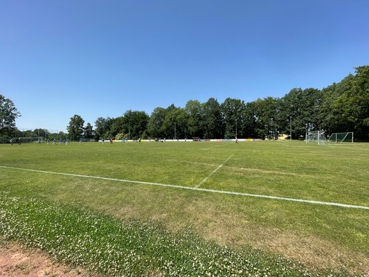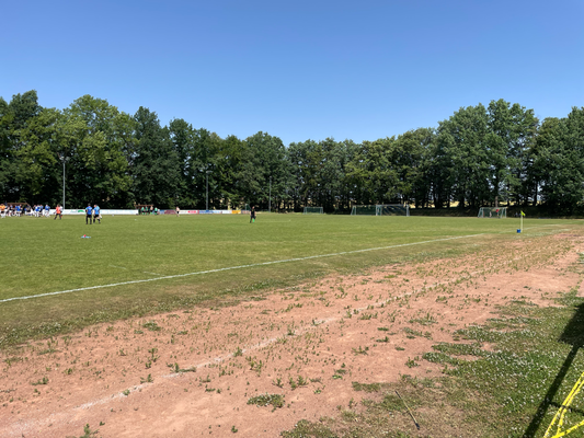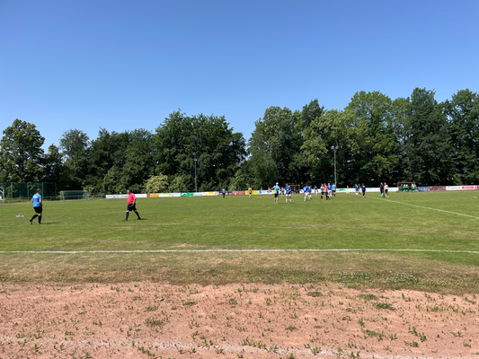 Es dauerte auch nicht allzu lange bis der Schiedsrichter die Partie anpfiff und es entwickelte sich ein Spiel auf ein Tor. Die Gastgeber berannten das Rapid-Tor im Minuten-Takt und die Gäste waren zur Halbzeit mit dem 0-3 Rückstand fast noch gut bedient. Der Unparteiische hatte bei den hohen Temperaturen ein Einsehen mit den (teilweise auch wirklich schon recht betagten) Spielern und beendete die erste Halbzeit nach 41 Minuten. In der Pause rechneten wir das erste Mal durch, ob wir nicht noch ein 12:30 Uhr Spiel einschieben könnten und fanden Meerane. Allerdings beim genaueren Hochrechnen, merkten wir, dass uns eine knappe Viertelstunde fehlen würde und geplantes zu spät kommen, das kam uns nicht in den Sinn. Der Herr in Schwarz machte nur 12 Minuten Halbzeitpause und pfiff das Spiel nach 81 Minuten endgültig ab. Also insgesamt 12 Minuten gewonnen von 15, die wir für Meerane gebraucht hätten. Wir nahmen die Beine in die Hand und gingen schnellen Schrittes in Richtung Auto, schnell eingestiegen und ich brauste los.