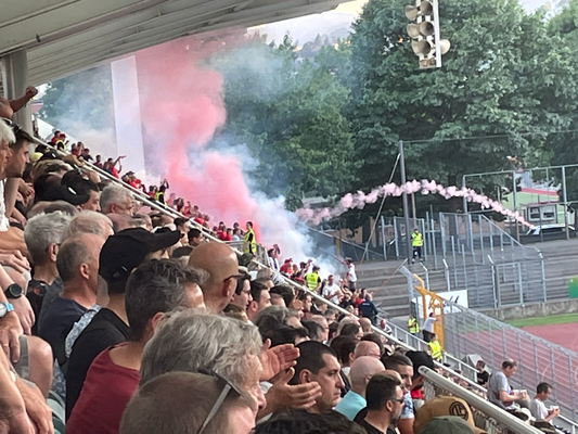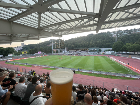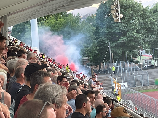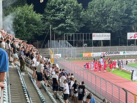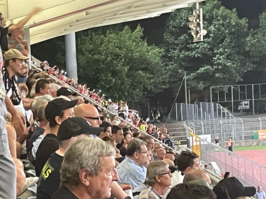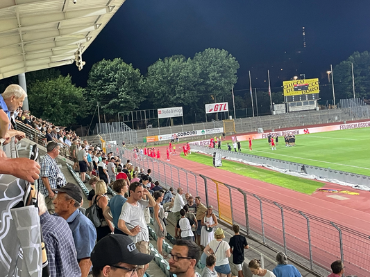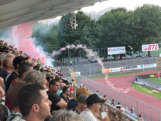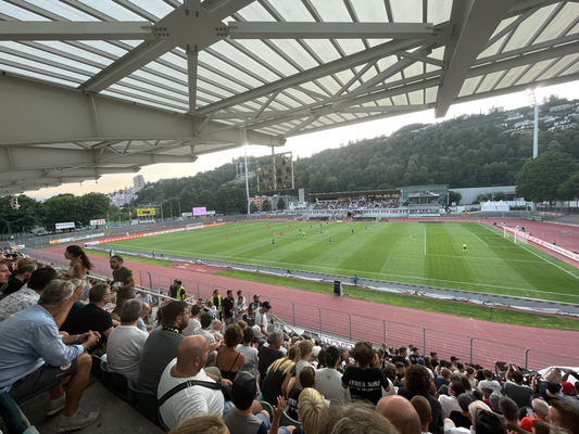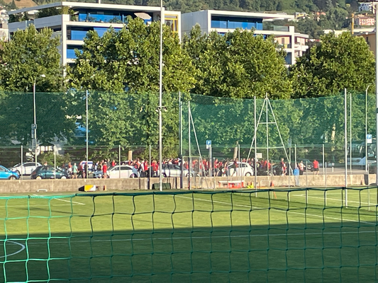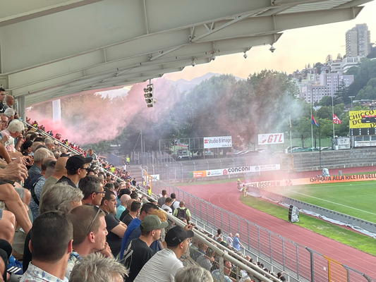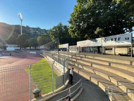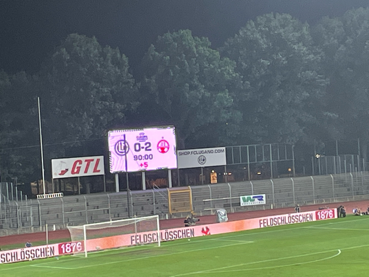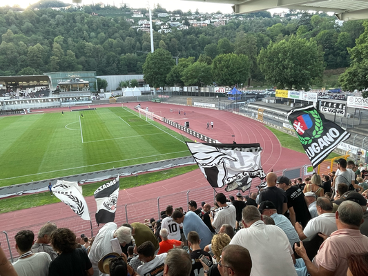 Am Vorabend unserer Abfahrt war ich noch beim SSC Juno Burg und kam gegen 21:30 Uhr nachhause. Eine knappe halbe Stunde später lag ich im Bett und wie es halt so ist, wenn man eigentlich schlafen muss, ging es natürlich nicht. Ich denke, es war dann irgendwie so gegen 23:30 Uhr, als ich endlich einschlief, aber um 2:20 Uhr rappelte der Wecke bereits wieder. Noch ein wenig übermüdet (aber voller Vorfreude) stand ich auf, verfrachtete meinen Körper unter die Dusche und quälte danach zwei Toastbrote in mich rein. Schnell die Kaffeemaschine angeworfen und mir noch meinen großen Thermobecher aufgefüllt. Angezogen und schon war es 3 Uhr, die eigentlich geplante Abfahrtszeit. Wir verpassten unser Ziel knapp um drei Minuten, aber das war nicht tragisch, außer dass Christian in Stockheim kurz auf uns warten musste. Jessica übernahm die erste Teilstrecke, aber bereits nach anderthalb Stunden Fahrt standen wir kurz vor Mannheim aufgrund eines brennenden LKW eine knappe halbe Stunde in einer Autobahn-Vollsperrung. Puffer hatten wir ja weiterhin genug, aber am frühen Morgen hat natürlich niemand Lust auf so etwas. Nachdem wir dann die Autobahn verlassen und den Ort des Geschehens umfahren konnten, ging es dann endlich normal weiter. Auf einem Autohof zwischen Freiburg und Basel tankten wir noch mal voll, da die Schweizer aktuell um einiges höhere Spritpreise habe, als wir in Deutschland. Leider gab es hier keine Vignette, so dass wir am letzten Autobahn-Rasthof noch mal raus mussten, um diese zu kaufen. Hier wechselten wir auch die Positionen und ich übernahm fortan das Steuer. Via Basel und Luzern ging es in der Schweiz fast durchgehend die A2 entlang in Richtung Süden. Der fast 17 Kilometer lange Gotthard-Tunnel machte keine Probleme und danach ging es mit einem kleinen Tränchen im Auge am Ambri-Piotta vorbei, wo der Abriss der legendären Eishalle Valascia bereits begonnen hat. Unser erstes Etappenziel Lugano erreichten wir dann um etwa 10:30 Uhr, wo wir unser Auto halbwegs zentral in einem Parkhaus abstellten und danach den Tag mit Sightseeing verbrachten. Zuerst am wunderschönen See entlang geschlendert, entschieden wir uns dafür danach mit der Zahnradbahn auf den Aussichtspunkt Monte San Salvatore zu fahren. Zwar mit 26 Franken alles andere als billig, aber die Aussicht von hier oben ist unfassbar schön und diese kann ich jedem Lugano-Besucher nur empfehlen. Nachdem wir dann zurück unten in der Stadt waren, setzten wir uns in eine Pizzeria (Pizza Margherita = 22 Franken, Bier 0,4l = 9 Franken, Cola 0,3l = 4 Franken). Auch verdammt teuer, aber immerhin war das Essen wenigstens lecker. Vollgefuttert liefen wir noch ein klein wenig am See entlang, bevor wir zurück zum Auto gingen und in Richtung Fußballstadion fuhren. Gute Entscheidung, denn so bekamen wir noch einen guten Parkplatz (nur etwa 50 Meter vom unserem Eingang entfernt) und konnten zu Fuß noch mal in die Eishalle des HC Lugano nebenan gehen, wo wir uns bei den kühlen Temperaturen erfrischten und ein wenig dem U13-Training auf dem Eis zuschauten. Um 19:10 Uhr liefen wir wieder die paar Meter zum Stadio Comunale Cornaredo, um auch hier direkt den Ground zu betreten. Da hier nur die beiden Sitz-Tribünen geöffnet werden durften, war leider unser Bewegungsradius sehr eingeschränkt und nach dem Kauf eines Jubiläum-Bieres setzten wir uns dann auf die von mir zuhause gebuchten Tickets. Leider stellte man die Gäste-Fans direkt seitlich neben unsere Tribüne und nicht zentral hinter das Tor, wie sonst bei Ligaspielen üblich, so dass wir von ihrer Pyro-Show beim Einlauf der Spieler nur teilweise etwas sehen konnten. Der Anpfiff zu dieser Partie bedeutete für mich den Anpfiff in meinem 1.000sten verschiedenen Ground, worauf wir direkt anstießen. Die Gäste hatten die bessere Spielanlage, aber nervten damit, dass sie dauernd am Bodenlagen. Bereits nach nur knapp 100 Sekunden gab es die ersten minutenlange Unterbrechung deswegen. Chancen gab es lange Zeit wenige und wenn, dann waren sie auf jeden Fall bei den Gästen aus Israel. Bis zur 0-1 Führung dauerte es aber dennoch bis kurz vor dem Pausenpfiff des italienischen Unparteiischen. Bereits in der ersten Hälfte wurden fünf Minuten nachgespielt, was eher unüblich ist, aber definitiv gerechtfertigt war. In der zweiten Halbzeit wurde es nicht besser, im Gegenteil: Gefühlt lag immer ein Spieler mit einem roten Trikot am Boden und Lugano bemühte sich zumindestens den Ausgleich zu erzielen, aber agierte doch recht kopflos. Sehr schade, dass die Zeitschinderei der Gäste sogar noch mehr belohnt wurde, als man in den Schlussminuten einen Konter perfekt ausspielte das Ergebnis noch erhöhen konnte. Auch dieses Mal wurden noch fünf Minuten drauf gepackt, was mir persönlich sogar noch zu gering war. Aber die Gastgeber blieben weiterhin weitestgehend ungefährlich und so bleib es beim 0-2 am Ende des Spiels.