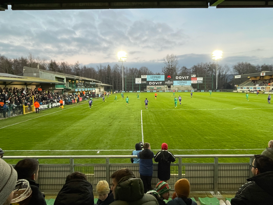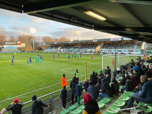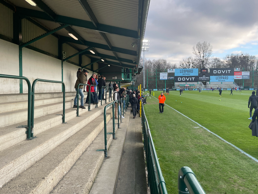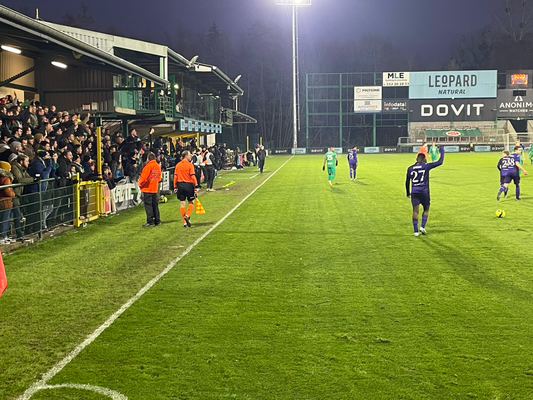 Die Gastgeber hatte ich ja bereits letzte Woche in Dender gesehen, als man dort im 19. Saisonspiel erst den zweiten Sieg einfahren konnte, aber für die ist bereits seit ein paar Spielen klar, dass man in die Abstiegsrunde gehen muss. Für die Gäste, die Zweitvertretung vom Jupiler Pro League Team RSC Anderlecht, geht es heute noch um viel, denn man steht drei Punkte hinter dem 6. Platz, welcher die Aufstiegs- und nicht die Anstiegsrunde bedeuten würde. Man selbst darf zwar natürlich nicht aufsteigen, aber somit wäre zumindestens der Klassenerhalt vorzeitig gesichert. Da die Konkurrenz an diesem Wochenende allesamt patzte, würde man mit einem Dreier aufgrund des besseren Torverhältnisses sogar auf Platz 5 rutschen können. Die RSCA Futures, komplett in lila spielend, übernahmen auch früh in der Partie die Initiative und gingen durch zwei wunderschöne Treffer bereits in der ersten halben Stunde zurecht in Führung. Als man dann noch einen Elfmeter zugesprochen bekam, deutete alles auf einen recht sicheren Sieg der Jungs aus der Region der Hauptstadt Brüssel hin. Der Strafstoß wurde allerdings vom erst 18-jährigen Top-Stürmer verschossen und kurz darauf hämmerte der Mittelstürmer von RE Virton die Hulla auf der anderen Seite in die Maschen, so dass es mit nur einem knappen 1-2 in die Halbzeit ging. Direkt nach dem Seitenwechsel war es dann aber der Gäste-Goalgetter, der im Abschnitt noch den Elfmeter vergab, der die Partie mit dem 1-3 schon früh vorentschied. Virton war nach vorne hin einfach zu ungenau und hinten bei fast jedem Angriff wackelig, dennoch konnte Anderlecht keinen weiteren Treffer erzielen. Am Ende blieb es aber beim recht souveränen Auswärtssieg. Während die einheimische Pöbelfraktion es eher auf den Schiedsrichter (der zwar sinnlos kleinlich pfiff und in einer nicht unfairen Partie zehn gelbe Karten verteilte) und den Linienrichter abgesehen hatten, gehen die drei Punkte mit in den RSC-Mannschaftsbus. Alles in allem dennoch ein nettes erstes von zwei Spielen, welches wir direkt schnellen Schrittes nach dem Abpfiff dann aber verlassen mussten.