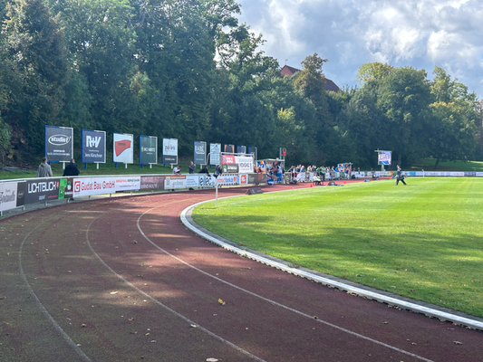 Witzenhausen hatten wie die letzten Kilometer noch auf der A38 zu bewältigen und um 13:35 Uhr kamen wir im Stadionbereich an. Die ausgesuchte Straße zum parken war leider gesperrt, ansonsten