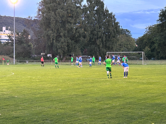 das teilweise aufrücken der Heim-Mannschaft und mit einem schnellen Angriff überspielte man Waldtal. Beim Abschluss standen zwar bereits wieder drei(!) Grüne im eigenen Fünfer, aber der Ball