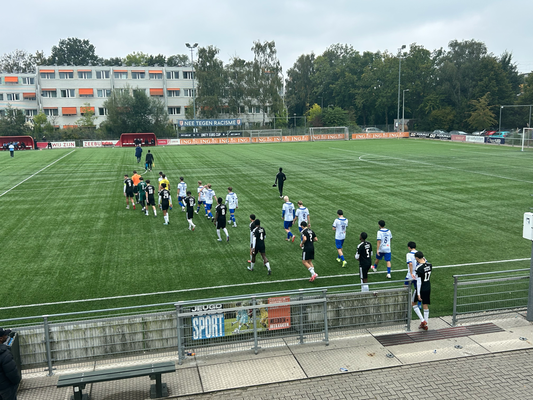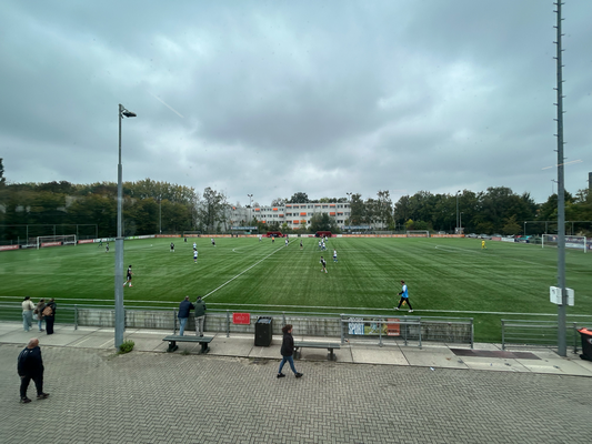 Gestern Abend mit dem EC Bad Nauheim eine bittere Last Minute Niederlage kassiert, ging es danach frustriert nachhause. Joa, logistisch Sinn machte das wenig, aber hatte ich gestern meine Familie dabei, waren heute Patrick und Sven mit am Start. Bei einer Übernachtung in Krefeld hätte ich sonst die komplette Strecken alleine bestreiten müssen. Mal abgesehen, dass das alles zusammen am Ende vermutlich sogar teurerer gekommen wäre, habe ich so wenigstens auch immer Unterhaltung im Auto. Um 0:35 Uhr waren wir zuhause, eine knappe Dreiviertelstunde später dürfte ich eingeschlafen gewesen sein, um 6:10 Uhr klingelte dann der Wecker wieder. Schnell zwei Scheiben Toast in den Magen geschoben, saß ich gemeinsam mir Sven (der mittlerweise bei mir eingetroffen war) um 6:40 Uhr schon wieder im Auto. Inklusive dem Schlenker zum Bahnhof in Butzbach, wo wir Patrick einsammelten (mit nur drei Minuten Verspätung der DB, das ist ja schon ein Grund es hier positiv zu erwähnen) waren es für die Hinfahrt 478 Kilometer, die vom Navi mit 4:57 Stunden angegeben wurden. Außer die ganzen nervigen Baustellen kamen wie auf der A45 erstmal gut voran, bis kurz vor Siegen gerade von der Polizei die beidem linken Spuren gesperrt wurden, da es dort einen Crash gab. Da es noch recht frisch war, war der Rückstau noch nicht so groß und nach zwei, drei Minuten waren wir hier vorbei. Durch Köln hindurch und an Krefeld vorbei (wo ich 11,5 Stunden zuvor auf die Autobahn gefahren war - jedoch in die andere Richtung), fuhren wir auf der A57 weiter. In Sonsbeck machten wir aufgrund der niederländischen Spritpreise den Tank nochmal voll und passierten kurz nach 10 Uhr die Grenze zu unseren Nachbarland. Im Bezirk Limburg begannen wir auf A77, fuhren nach wenigen Kilometern aber direkt auf die A73. Auch die A50 brachte uns in nördliche Richtung, ehe wir die A15 in westliche Richtung befuhren. Am Kreuz Dell bei Zaltbommel wechselten wir auf die A2, die wir an Utrecht vorbei in nördliche Richtung nutzten. Amsterdam war erreicht und nach ein wenig auf dem “Ring Oost” und zwei, drei Kilometern Stadtverkehr kamen wir 40 Minuten vor Kick Off am Sportgelände an. Hier gab es quasi keine Parkplätze, also mussten wir nochmal ein wenig suchen, fanden aber im Wohngebiet gegenüber problemlos einen Stellplatz. Drinnen ein wenig noch den Spielen auf den Nebenplätzen zugeschaut, eine kleine Portion Fritten geholt und los ging auch schon die Partie.