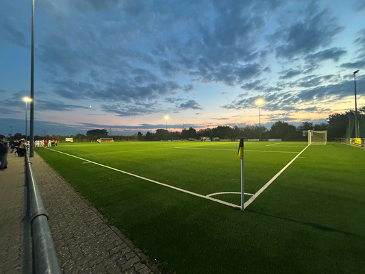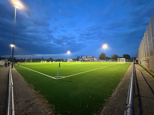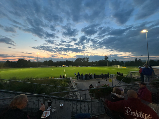 Der Montag, der Schontag, der fällt in dieser Woche mal aus. Patrick machte mich am Samstag auf unserer Volendam-Tour auf einen Kick am ungewöhnlichen Wochentag (den es aber in der Südwest-Region öfters gibt), aufmerksam. Ich war aber Samstag nicht so antriebsvoll, zumal ich immer noch mit einer leichten Erkältung und Husten kämpfe, so ließ ich mir das erstmal offen und wollte kurzfristig darüber entscheiden. Mir ging es den heutigem Tag über soweit „ganz gut“ und so entschied ich mich irgendwann nach der Mittagspause es durch zu ziehen, kämpfte aber schon noch ein wenig mit mir, da ich nämlich vermutlich eigentlich eher ins Bett gehörte. Snicki wollte auch erst mit, blieb dann aber doch zuhause und so machte ich mich um 17:42 Uhr alleine auf den Weg, der einfache Strecke 160 Kilometer betrug und vom Navi mit 1:37 Stunden Fahrzeit angegeben war. In Staden fuhr ich auf die A45, die B45 führte mich an Hanau vorbei auf die A3, die ich bis zum Flughafen FRA benutzte. Hier musste ich dann erneut die Autobahn wechseln, dieses Mal auf die A5, ein weiterer switch dann das abbiegen auf die A67 am Darmstädter Kreuz. Das letzte Mal am „Autobahn-Wechsel-Dich“-Spielchen nahm ich dann am Viernheimer Dreieck teil und weiter ging es auf der A6. An der Ausfahrt Grünstadt verließ ich den Highway und hatte noch etwa 3,5 Kilometer, bis ich exakt zehn Minuten vor Anpfiff auf dem Parkplatz des Sportgeländes einen der letzten freien Stellplätze ergatterte. Fünf Euro gezahlt, drinnen schnell Patrick mit Sohn Dario, Roland und Oliver Hepp begrüßt, drehte ich aber erstmal meine Fotorunde so lange es noch nicht ganz dunkel war. Wir stellten uns dann auch seitlich gemeinsam an die Barriere und schauten uns das Match gemeinsam an.